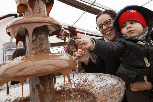 An 28 Ständen zeigten Schokoladehersteller aus der Schweiz und Frankreich ihre Kreationen: Marshmallows im Schokolademantel, Brotaufstriche und natürlich die berühmten Schokoladebrunnen in weiss, schwarz und braun.