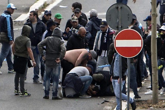 Im Vorfeld des italienischen Cupfinals zwischen Fiorentina – Napoli bekämpfen sich in Rom verschiedene Gruppierungen. Das Spiel wurde erst nach 45-minütigen Verhandlungen angepfiffen.