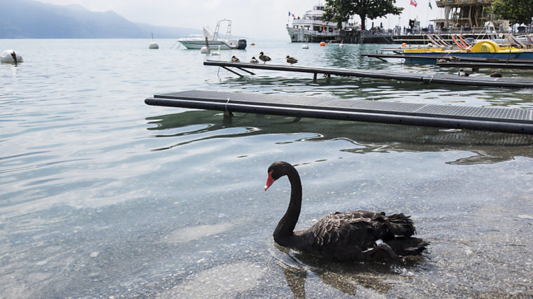 Nachdem Biologen ausgeschlossen hatten, dass der schwarze Schwan aus Australien mit den einheimischen Tieren Nachwuchs zeugen könnte, wurde er freigelassen. Dem nahm sich die Waadtländer FDP-Staatsrätin Jacqueline de Quattro Anfang Juli höchstpersönlich an.