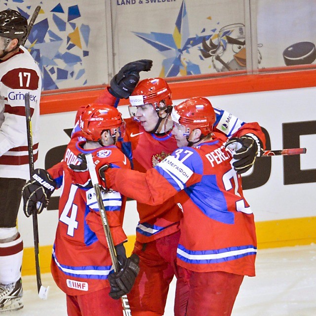 Im ersten Spiel vom Samstag führte Jewgeni Malkin Russland zu einem 5:2-Startsieg über Lettland. Der Stürmerstar der Pittsburgh Penguins korrigierte mit zwei Toren und einem Assist den 0:1-Rückstand gegen den Aussenseiter bis zur 46. Minute (3:1) fast im Alleingang. Die übrigen Torschützen für den Titelanwärter waren Ilja Nikulin (Kasan), Alexander Popow (Omsk) und Ilja Kuzsnezow (Tscheljabinsk). Miks Indrasis hatte den Aussenseiter früh in Führung gebracht. In Überzahl gelang NHL-Stürmer Kaspars Daugavins von den Ottawa Senators vor den Augen des deutschen Bundestrainers Köbi Kölliker der Anschlusstreffer.