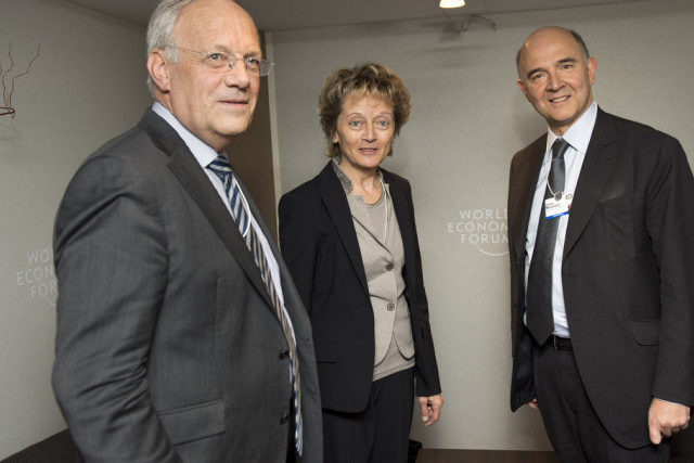 Die Revision des Erbschaftssteuerabkommens zwischen der Schweiz und Frankreich wird voraussichtlich im Parlament scheitern. Trotzdem demonstrierten die Bundesräte Eveline Widmer-Schlumpf, Johann Schneider-Ammann und der französische Finanzminister in Davos Einigkeit.