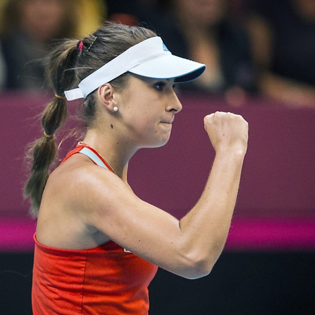 Die Schweizer Nummer 2 Timea Bacsinszky (WTA 162) geriet gegen die 70 Plätze besser rangierte Teliana Pereira nur zu Beginn in Rücklage. Nach einem 1:3-Rückstand gewann die Waadtländerin sieben Games in Serie. Die Brasilianerin, die im 25. Fedcup-Match erst zum fünften Mal als Verliererin vom Platz musste, brachte nach dem Spiel zum 1:0 ihren Aufschlag bis zum Schluss nie mehr durch. Bacsinszky verwertete nach 87 Minuten ihren ersten Matchball zum 6:3, 6:3.