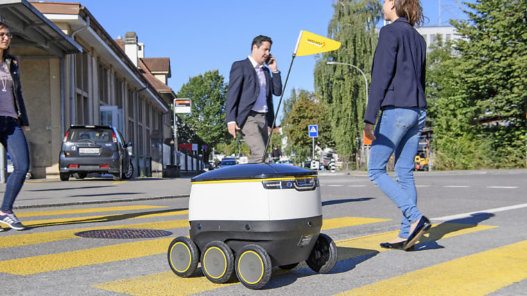 Die Schweizerische Post testet ab September in drei Gemeinden selbstfahrende Roboter zur Auslieferung bestimmter Waren. Die Roboter fahren auf den Trottoirs und zirkulieren im Schritttempo.