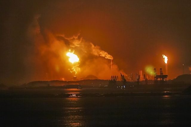 Dem Bericht zufolge hatte ausgelaufenes Öl am Vorabend Feuer gefangen und drei Öltanks zur Explosion gebracht. Die Erschütterungen seien noch in 50 Kilometer Entfernung zu spüren gewesen. Fernsehaufnahmen zeigten riesige Flammen über der Fabrikanlage. Die Anrainer wurden vorsorglich in Sicherheit gebracht.