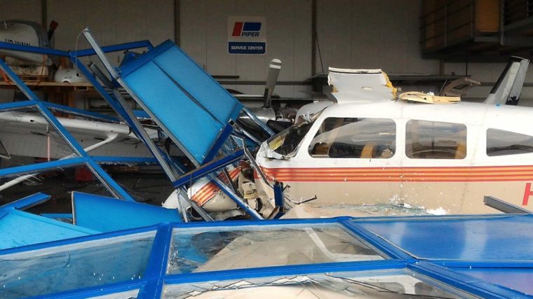 Wie die Freiburger Kantonspolizei mitteilte, verlor der Pilot eines Kleinflugzeugs wahrscheinlich bei der Landung auf dem Freiburger Flugplatz die Herrschaft über seine Maschine. Das Flugzeug vom Typ Piper kam vom Kurs ab und durchschlug die Tür eines Hangars, bevor es zum Stillstand kam.