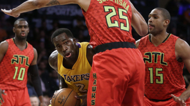 Thabo Sefolosha feiert in der NBA vor dem zuschauenden Roger Federer mit den Atlanta Hawks einen 106:77-Kantersieg bei den Los Angeles Lakers.