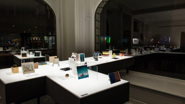 Vier Studierende des Instituts für Innenarchitektur und Szenografie der Hochschule für Gestaltung und Kunst haben ein spezielles Gestaltungskonzept geschaffen: Im Raum verteilt stehen Leuchttische mit unterschiedlichen Ausmassen und Formen, auf denen die Werke platziert beziehungsweise, wie es im Ausstellungstitel heisst, «ins Licht getaucht» sind.