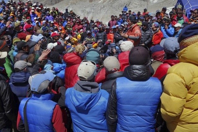 Mehrere Sherpas sagten der Nachrichtenagentur dpa, sie wollten aus Respekt vor ihren toten Freunden und Familienangehörigen in dieser Saison nicht weiter gehen. Westliche Bergführer berichteten hingegen aus dem Basislager, es sei vor allem um Politik gegangen. Radikale Gruppen hätten die Tragödie am Everest benutzt, um ihren Einfluss auszubauen, schreibt etwa der US-Bergsteiger Greg Paul.