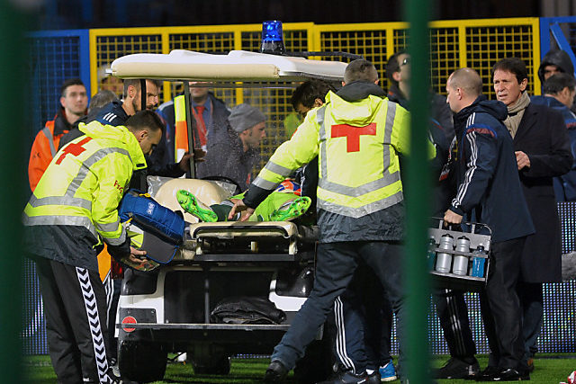 Kurz nach dem Anpfiff in Podgorica war der russische Goalie Igor Akinfejew von einem Feuerwerkskörper am Hinterkopf getroffen worden. Der Torhüter sackte zusammen und musste auf einer Bahre vom Feld getragen werden. Akinfejew soll gemäss ersten Informationen Brandverletzungen erlitten haben. Im Spital soll er bei Bewusstsein gewesen sein.