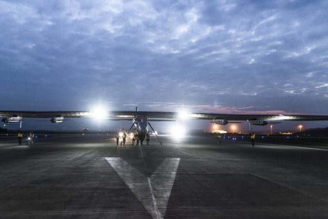 Angetrieben wird das Karbonfaser-Flugzeug von vier Elektromotoren. Mit 72 Metern hat es eine grössere Spannweite als ein Jumbojet, wiegt aber gerade so viel wie ein Mittelklassewagen. Ende Juli oder Anfang August soll die 35’000 Kilometer lange Reise am Persischen Golf enden.