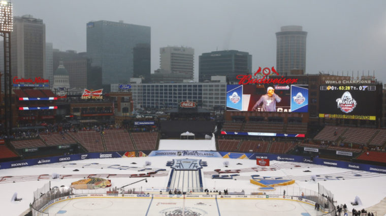 24 Stunden nach dem Neujahrs-Freiluftspiel gewinnen die St. Louis Blues die «NHL Winter Classic» gegen die Chicago Blackhawks vor 46’556 Zuschauern im Baseball-Stadion von St. Louis mit 4:1.