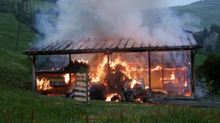 Ein Stallbrand hat am frühen Dienstagmorgen in Curaglia im Bündner Oberland Sachschaden von mehreren hunderttausend Franken verursacht. 20 Hühner wurden rechtzeitig befreit. Personen kamen nicht zu Schaden.