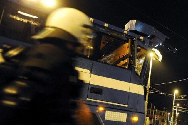 Ein Polizist wurde durch einen Flaschenwurf verletzt. Die Polizei nahm zwei junge Männer fest, wie sie mitteilte. Die Höhe des angerichteten Sachschadens könne noch nicht beziffert werden.