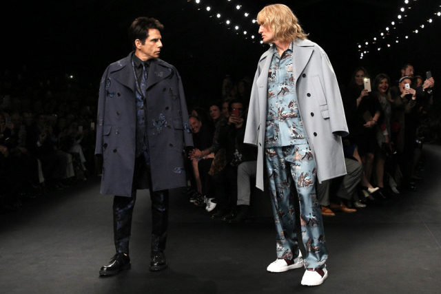Eigentlich ging es bei der Präsentation der Entwürfe für Herbst/Winter 2015/16 um Damenmode. Doch dann kündigte die PR-Agentur des Filmverleihers zum Film «Zoolander 2» an: «Das populärste männliche Model-Duo der Welt», Derek Zoolander und Hansel, kehre 2016 – nach 14 Jahren – endlich wieder zurück ins Kino. Der erste Teil – schlicht «Zoolander» – kam 2001 ins Kino. Fans warteten lange auf eine Fortsetzung.