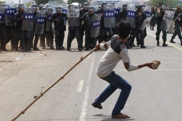 Die Textilarbeiter und -arbeiterinnen fordern eine Gehaltserhöhung. Ein Auslöser ihres Streiks waren auch die Berichte über die eingestürzten Textilfabriken in Bangladesch, wo mehr als 1000 Menschen getötet wurden.