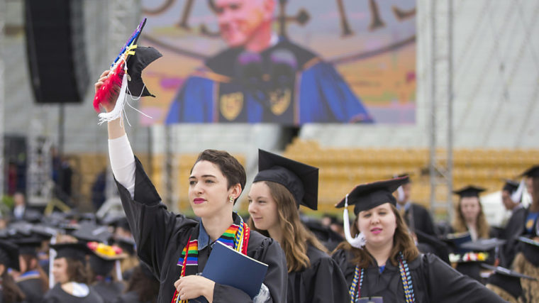 Die Hochschüler erhoben sich am Sonntag zum Beginn von Pences Rede von ihren Plätzen, wie auf Videos im Internet zu sehen war. Anschliessend verliessen sie schweigend das Stadion, in dem die Zeremonie stattfand.