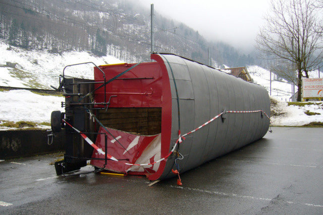 Im Bahnhof Wasserauen AI wehte der gefürchtete «Laseyerwind» am Samstag kurz vor Mitternacht einen historischen Bahnwagen der Appenzeller Bahnen vom Bahndamm auf den darunterliegenden Parkplatz. Der noch für Ausstellungen genutzte Wagen aus dem Jahr 1886 ist Schrott, wie die Bahnen meldeten.
