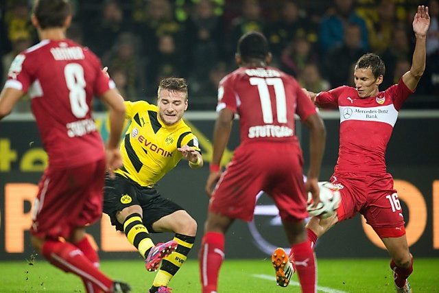 Wobei die Stuttgarter beim Schlusspfiff nicht einmal sicher waren, ob sie sich über das Resultat freuen oder ärgern sollten. 2:0 hatten sie geführt nach den Toren von Daniel Didavi (49./68.). Am Ende war ihnen der erste Saisonsieg aber doch entglitten. Die Stürmer Pierre-Emerick Aubameyang (73.) nach einem Alleingang und Ciro Immobile (86.) nach einem Freistoss sorgten noch für den Dortmunder Ausgleich.