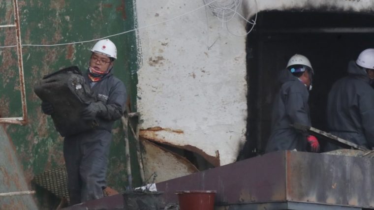 Die «Sewol» wurde nach der Hebung aus mehr als 40 Metern Tiefe zunächst auf ein Schwerlastschiff verladen. Das Spezialschiff brachte das Wrack dann nach Mokpo, wo es an Land gesetzt wurde.