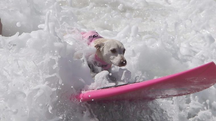 Zum achten Mal wurde der Wettkampf am Strand von Huntington Beach veranstaltet, die Einnahmen kommen einem guten Zweck zugute. Bewertet wurden unter anderem die Sicherheit auf dem Brett und die Dauer des Wellenreitens. In der Kategorie der Solo-Surfer siegte der Labrador Bono des Brasilianers Ivan Moreira.
