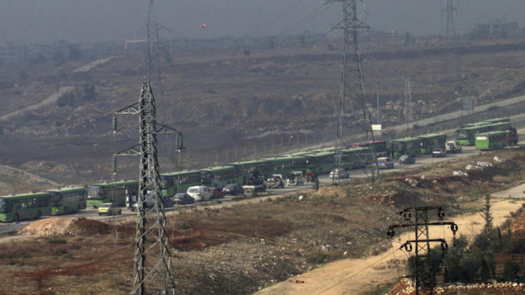 Syriens staatliche Nachrichtenagentur Sana meldete, der Abzug sei gestoppt worden, nachdem «terroristische Gruppen» auf Busse und Autos geschossen hätten. Das oppositionelle Lokale Koordinierungskomitee erklärte hingegen, regimetreue Milizen hätten das Feuer eröffnet. Nach Angaben der Syrischen Beobachtungsstelle für Menschenrechte kehrten Busse mit Hunderten Menschen wieder nach Ost-Aleppo zurück.