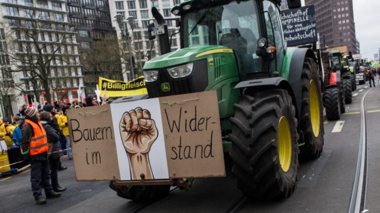 Tausende Menschen haben am Samstag in Berlin gegen industrielle Lebensmittel-Produktion und Massentierhaltung demonstriert. Der Protest zog unter dem Motto «Wir haben es satt» – angeführt 130 Traktoren – vom zentral gelegenen Potsdamer Platz zum Kanzleramt.