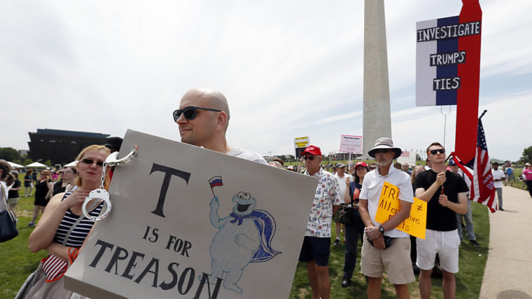 Die Demonstranten skandierten Parolen wie «Lügner!» und «Sperrt ihn ein!». Auch rund um das Washington Monument in der US-Hauptstadt Washington forderten rund 2000 Demonstranten eine unabhängige Untersuchung zu den Vorwürfen einer möglichen Zusammenarbeit zwischen Trumps Wahlkampfteam und Russland im Vorfeld der Präsidentschaftswahl.