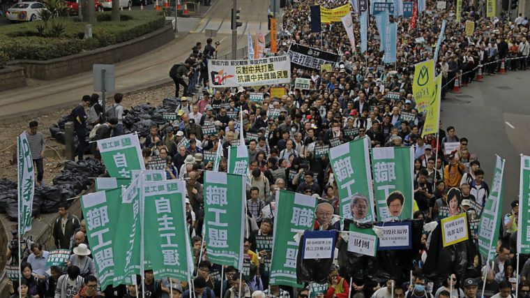 Ihr Protest richtete sich gegen die Pläne der Führung, vier kritische Abgeordnete ihrer Mandate zu entheben. An dem Demonstrationszug beteiligten sich auch die Abgeordneten, darunter Lau Siu Lai und Edward Yiu.