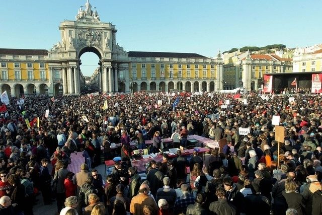 In der portugiesischen Hauptstadt Lissabon haben am Samstag tausende Menschen gegen die Sparmassnahmen der Regierung protestiert. Die aus dem ganzen Land angereisten Demonstranten zogen am Nachmittag von verschiedenen Orten der Stadt aus zum zentralen Praça do Comercio in der Altstadt.