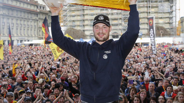 So viele Leute hätten noch nie einer Meisterfeier beigewohnt, meinte der Speaker. Tatsächlich drängten sich am späten Samstagnachmittag, als die Meistermannschaft die Bühne betrat, schätzungsweise über 10’000 Personen auf den Bundesplatz. Sie bejubelten bei der Ankunft jeden Spieler einzeln. In der Mitte des Platzes zündeten Fans zahlreiche Fackeln.