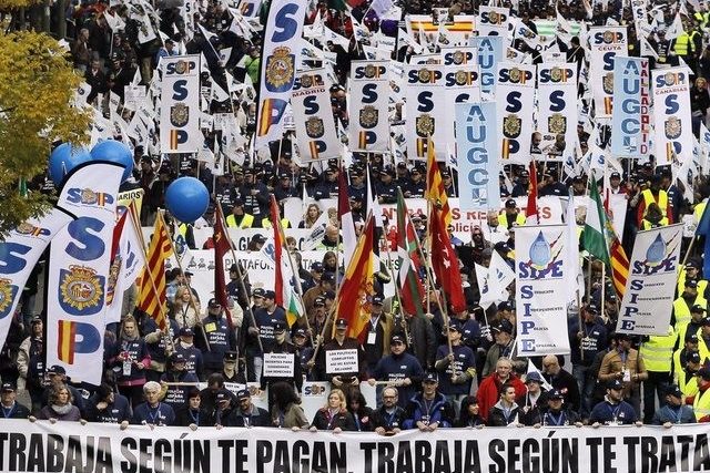 Fornet warnte vor einer Verschlechterung der Sicherheitslage, weil jedes Jahr bis zu 2000 Polizisten in den Ruhestand gingen, aus Spargründen aber nur 125 neue eingestellt würden. Die grösste Polizeigewerkschaft hatte zu der Demonstration aufgerufen, um gegen die massiven Einschnitte bei den Beamtengehältern zu protestieren.