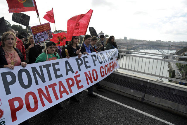 Bei der vom Gewerkschafts-Dachverband CGTP organisierten Hauptkundgebung fuhren Demonstranten in mehr als 400 Bussen demonstrativ über die Brücke des 25. April, die an die Nelkenrevolution von 1974 erinnert. Auf Plakaten und mit Gesängen wurde der Rücktritt der Mitte-rechts-Regierung von Pedro Passos Coelho gefordert. Auch in Porto im Norden des Landes machten Tausende ihrem Unmut Luft.