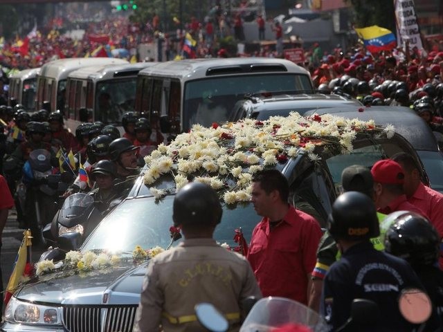 Von der Militärakademie, in der Chávez für neun Tage und Nächte öffentlich aufgebahrt war, setzte sich der Prozessionszug mit der Leiche nach einer kurzen Zeremonie in Bewegung.