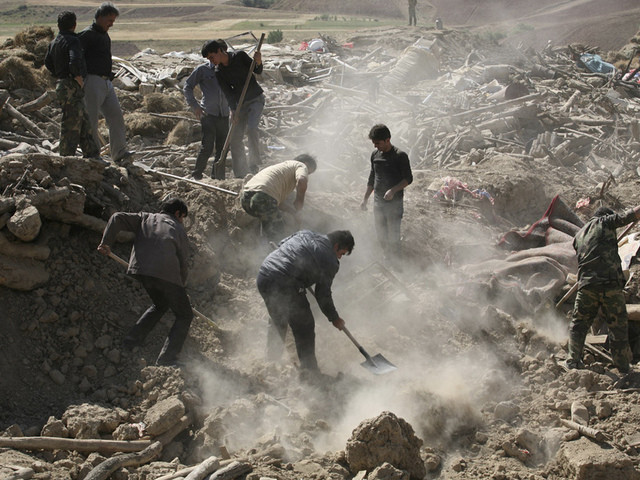 Bei dem Doppelbeben am Samstag waren nach unterschiedlichen Angaben offizieller Stellen etwa 300 Menschen ums Leben gekommen und 5000 verletzt worden. 54’000 Einwohner sind nach Angaben der Einsatzleitung obdachlos.