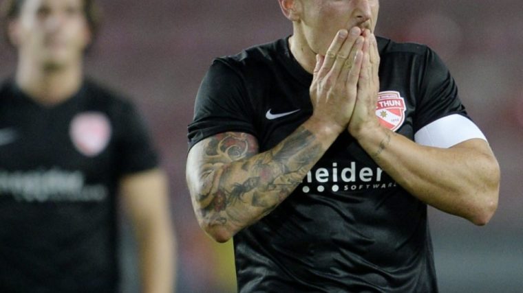 Der Thuner Dennis Hediger ärgert sich nach dem 3:3 im Rückspiel gegen Sparta Prag und dem Out in den Europa-League-Playoffs. «Es wäre mehr möglich gewesen.» Sein Team habe zu viele Fehler begangen.