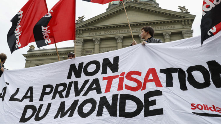 «Non à la PrivaTISAtion du Monde» hiess es auf einem Transparent der Westschweizer Bewegung solidaritéS. «Konzerne profitieren, Menschen verlieren» war anderswo zu lesen. Die Bauerngewerkschaft Uniterre forderte ihrerseits «Ernährungssouveränität statt Freihandel».