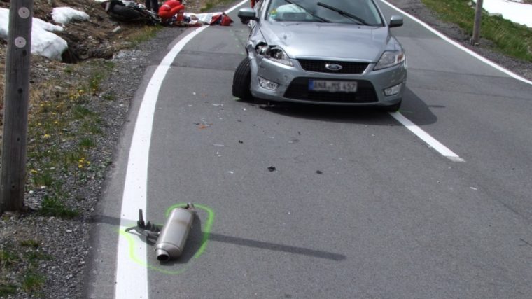 Das total beschädigte Motorrad und der erheblich beschädigte Personenwagen mussten abgeschleppt werden.