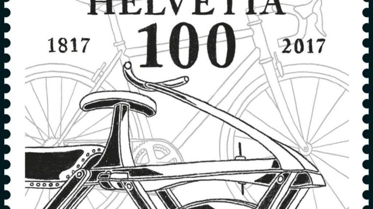 Zwei Sonderbriefmarken erhält dieses Jahr das Velo, das seinen 200. Geburtstag feiert. Das damalige Vehikel, die nach dem Erfinder Baron von Drais benannte «Draisine», erinnert an die heutigen Laufräder für Kinder, bei welchen man durch Abstossen mit den Füssen vorwärts kommt.