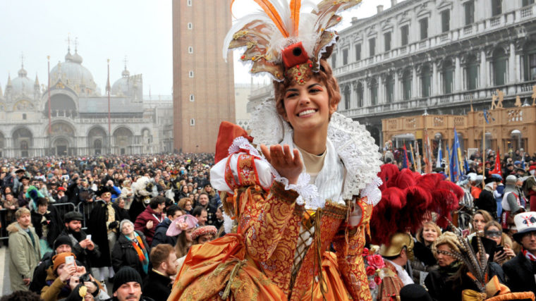 Am Samstag stieg die traditionelle «Festa delle Marie», das Fest der Marien. Vor 70’000 Zuschauern wurden zwölf junge Frauen von venezianischen Gondolieri auf den Markusplatz getragen. Eine von ihnen wird zum Ende des Karnevals am 9. Februar zur neuen Königin gekürt.