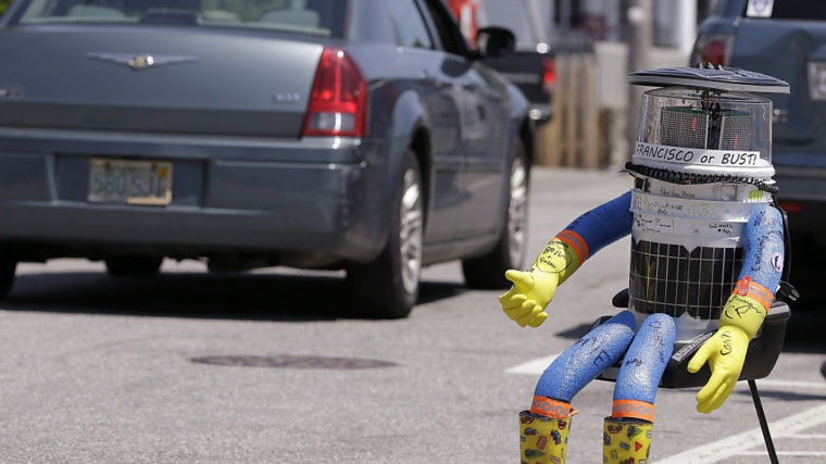 Das Roboterkunstwerk «hitchBOT» ist zerstört worden und muss seine Reise per Anhalter quer durch die USA bereits beenden. Das Konstrukt aus Eimer, Schwimmnudeln, Gummistiefeln und einem Tabletcomputer als Hirn ist laut den Betreibern in Philadelphia demoliert worden.