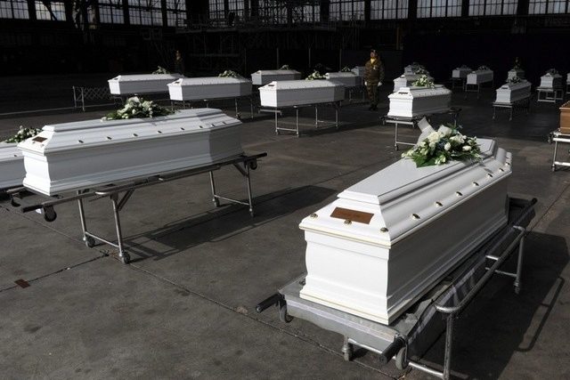 Soldaten der belgischen Armee trugen die Särge einen nach dem anderen in den grossen Saal, der mit grossen weissen Kronleuchtern, weissen Rosen und Bildern mit farbigen Handabdrücken geschmückt war. Begleitet wurde dieser Marsch unter Klaviermusik von den Familienmitgliedern des jeweiligen Toten.