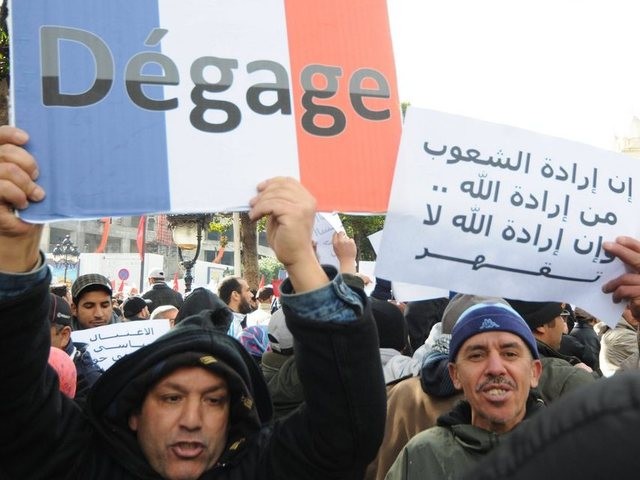 Wie Augenzeugen berichteten, riefen die Demonstranten gegen Frankreich gerichtete Parolen und liessen die islamistische Ennahda-Regierung hochleben. Zur Kundgebung in der Nähe der französischen Botschaft hatte die Ennahda-Jugendorganisation aufgerufen. Nach unterschiedlichen Quellen lag die Zahl der Demonstranten zwischen 3000 und 6000.
