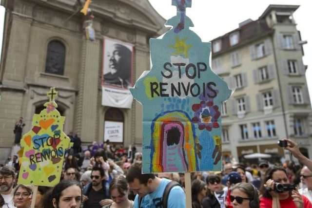 Vor der Kirche Saint-Laurent, wo fünf von der Rückschaffung nach Italien bedrohte Migranten für zwei Monate Aufnahme gefunden haben, verlangte der Grüne Waadtländer Ständerat Luc Recordon deren Aufnahme. Das derzeitige System sei inakzeptabel. Es gebe über 100’000 Flüchtlinge in der Schweiz und bestenfalls 25’000 Aufnahmeplätze für sie, die diesen Namen verdienten.