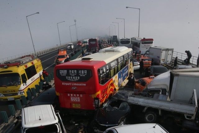 Der Unfall ereignete sich den Angaben zufolge auf der Autobahn vom Flughafen ins Zentrum von Seoul auf einer Brücke. Er wurde offensichtlich dadurch ausgelöst, dass ein Auto auf ein anderes auffuhr – und die anderen Fahrer dahinter nicht mehr rechtzeitig bremsen konnten.