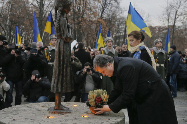 Die Hungerkatastrophe in den Jahren 1932 und 1933 war wegen der erzwungenen Kollektivierung der Landwirtschaft durch den sowjetischen Diktator Joseph Stalin ausgelöst worden. Bei der Zeremonie zog Poroschenko eine Parallele zum aktuellen Konflikt mit prorussischen Separatisten im Osten der Ukraine.