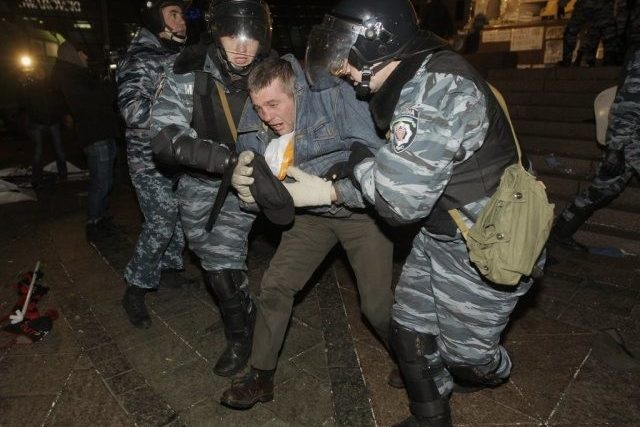 Gegen 4 Uhr Ortszeit (3 Uhr MEZ) begann die Polizei dann nach Angaben einer Augenzeugin, mit Knüppeln auf die Demonstranten einzuschlagen und sie von dem Platz zu drängen, der bereits zentraler Schauplatz der Orangenen Revolution im Jahr 2004 war.