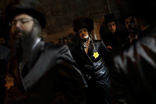 Um ihrem Protest Ausdruck zu verleihen, trugen einige von ihnen, darunter Kinder, den gelben Judenstern aus der Nazizeit und Anzüge von Insassen der Konzentrationslager während des Holocaust. Zwischenfälle gab es laut Polizei nicht.