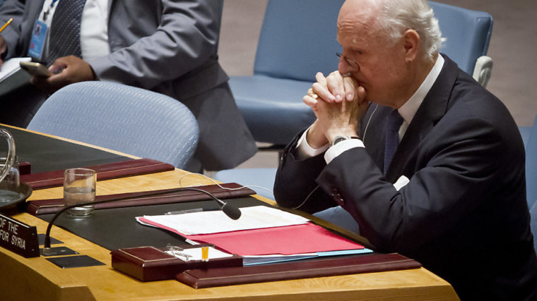 De Mistura hatte den Posten des UNO-Sondergesandten für Syrien im Juli 2014 übernommen. Seine Vorgänger Kofi Annan und Lakhdar Brahimi hatten beide nach erfolglosen Friedensbemühungen das Amt niedergelegt.