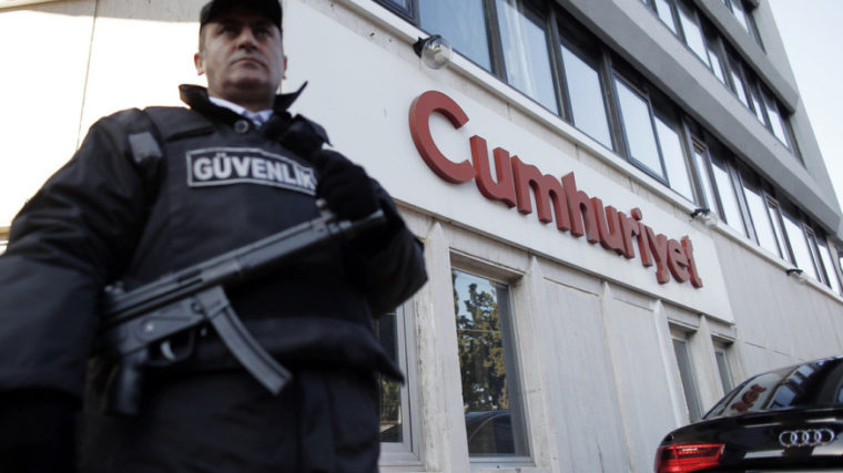 Fünf Tage nach seiner Festnahme ist gegen den Chefredaktor der regierungskritischen Zeitung «Cumhuriyet» Untersuchungshaft wegen Terrorvorwürfen verhängt worden. Ein Gericht erliess Haftbefehle gegen Chefredaktor Murat Sabuncu und 8 weitere «Cumhuriyet»-Mitarbeiter.