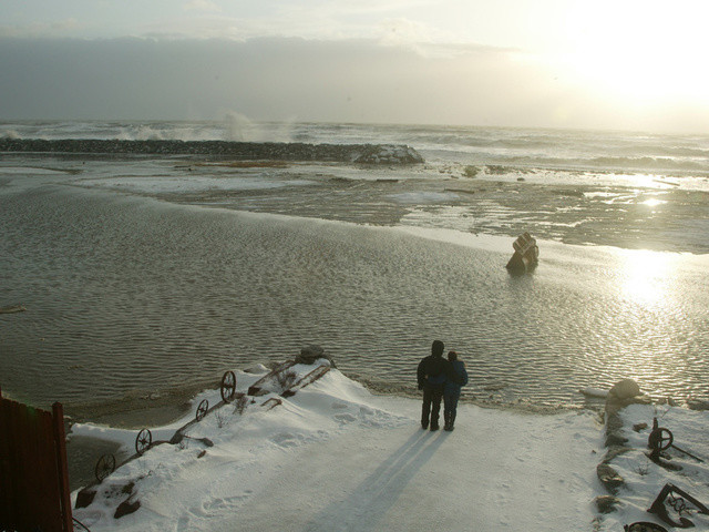 Eines der heftigsten Unwetter der vergangenen 40 Jahre ist am Mittwoch über das westliche Alaska hereingebrochen. Böen mit Hurrikanstärke von beinahe 140 Kilometern pro Stunde deckten Dächer ab.